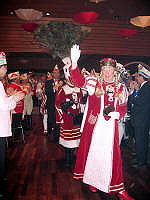 So wurde dann auch die Jungfrau Renée mit einem roten Teppich und Wunderkerzen im Saal vom Glessener Gefolge empfangen. Heimlich hatte das Gefolge alles organisiert und vorbereitet. Der Ideenreichtum kannte keine Grenzen. Jungfrau Renée war hierüber sehr überrascht.
